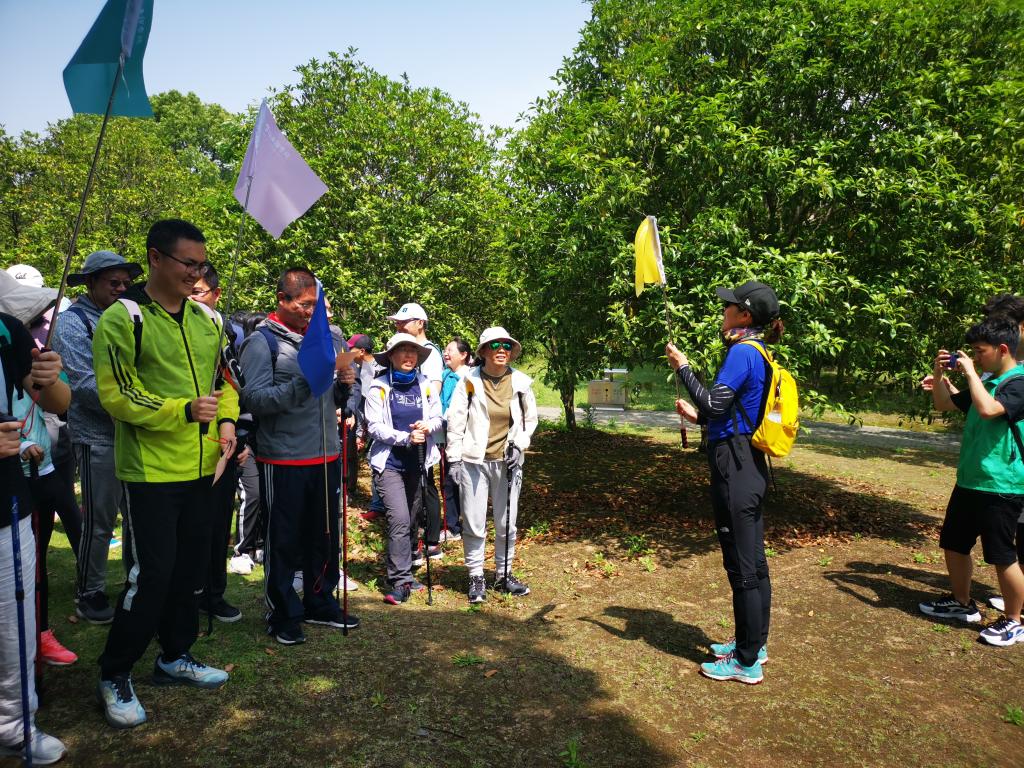 活动从宝界公园入口处出发,以大浮南村为终点,全程约6公里。出发前beat365中文官网分工会委员郑飞云老师进行了热情洋溢的活动介绍,他希望参与人员发扬勇于挑战、团队协作的精神,通过户外运动得到身体上的锻炼、精神上的愉悦和意志上的历练。分工会委员周楠迪老师介绍了此次登山活动的比赛规则和安全提示,并强调了做好环保工作。方芳老师向大家介绍了登山杖的使用方法以及注意事项。随后,8支队伍在队长的带领下取好队名和口号,分工会副主席徐静老师为各队队长授旗,一声令下各队依次向山顶进发。