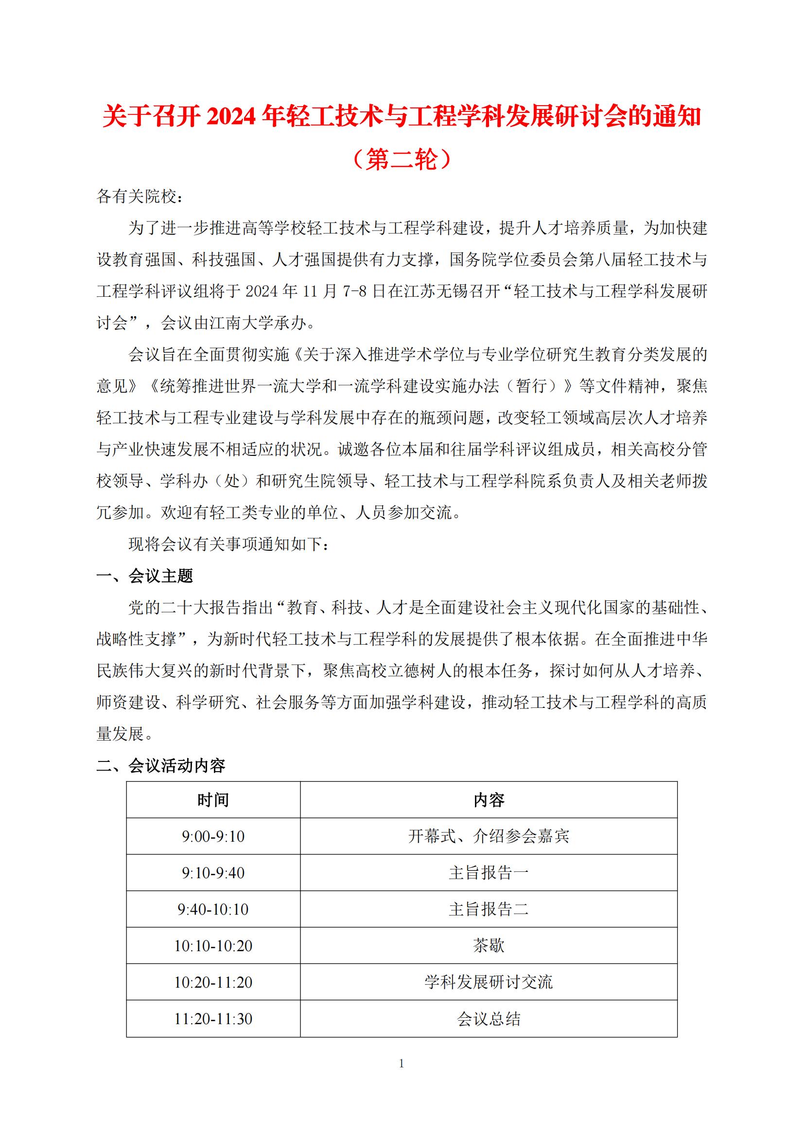 关于召开2024年轻工技术与工程学科发展研讨会的通知(第二轮)
