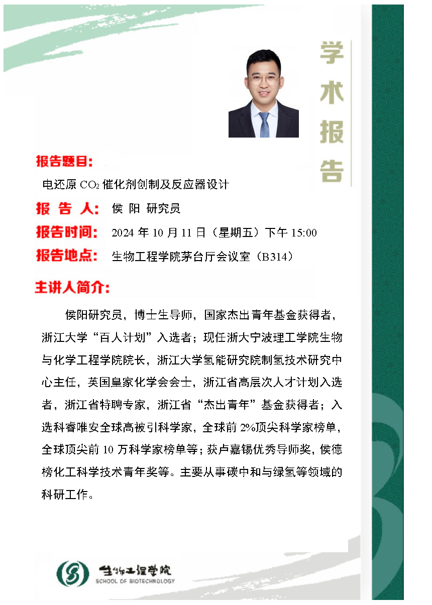10月11日学术报告:电还原CO2催化剂创制及反应器设计