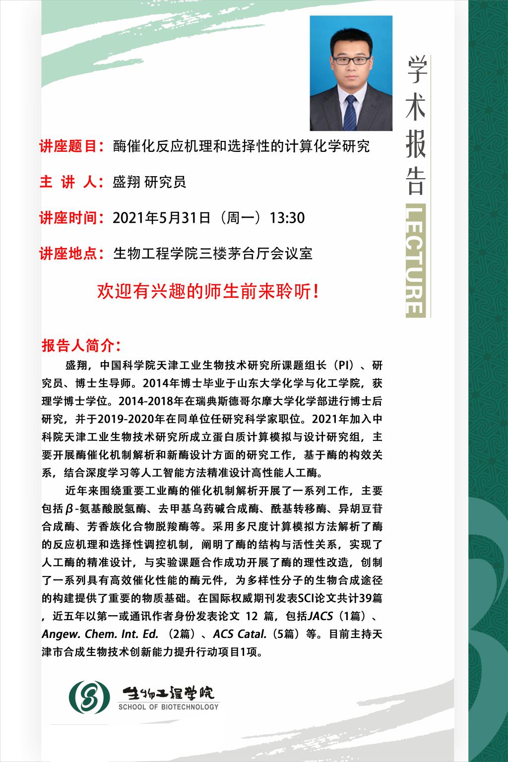 5月31日学术报告:酶催化反应机理和选择性的计算化学研究