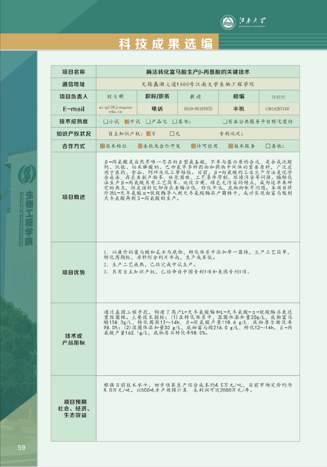 酶法转化富马酸生产β-丙氨酸的关键技术