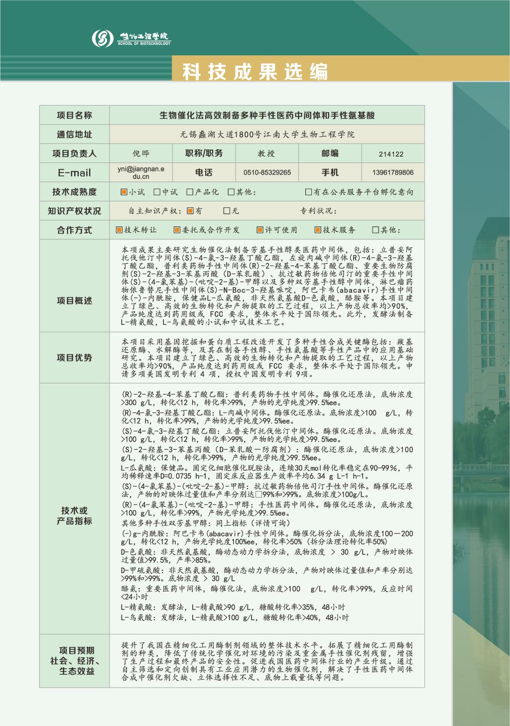 生物催化发高效制备多种手性医药中间体和手性氨基酸