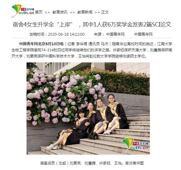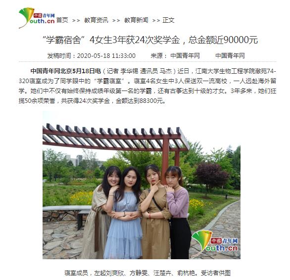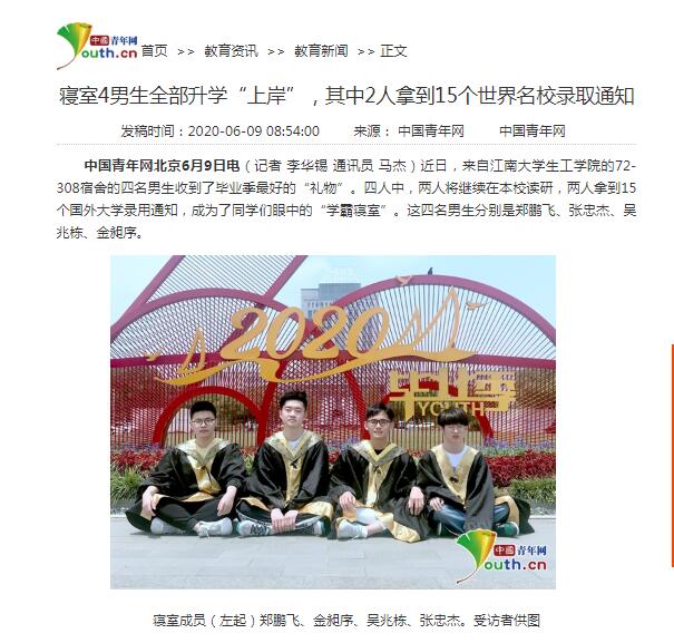 三个“学霸宿舍”中,有的宿舍学习氛围浓厚,大学三年狂揽50余项荣誉,共获得24次奖学金,总金额近90000元,寝室4人分别被南京大学、中山大学、beat365中文官网和英国格拉斯哥大学录取;有的寝室彼此激励、相互扶持,朝着不同的方向一起努力,宿舍四名男生中,两人将继续在本校读研,两人拿到15个国外大学录用通知;有的宿舍学术氛围浓厚,宿舍同学三年获得6万奖学金,并发表2篇SCI论文,寝室四人将分别前往天津大学,南开大学,伦敦大学学院和中国科学技术大学继续深造。
