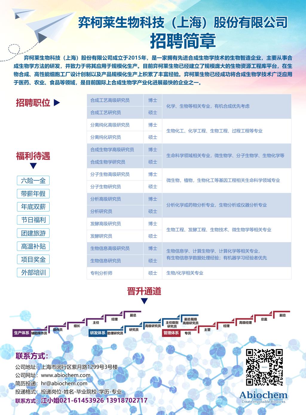 生工学院【2022】101号 弈柯莱生物科技(上海)校园招聘