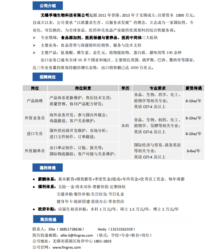生工学院【2022】110号 无锡孚瑞生物科技有限公司校园招聘