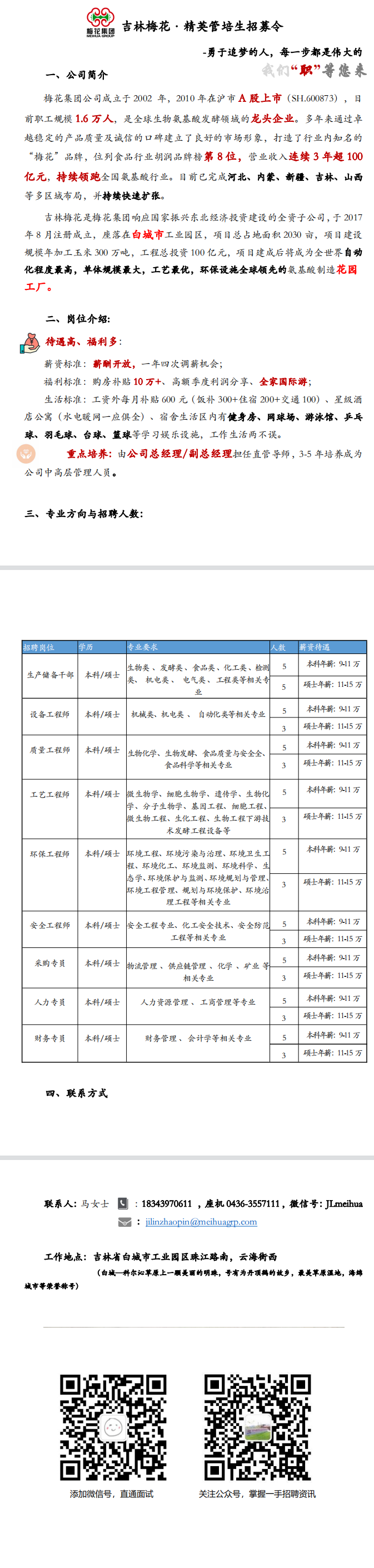 生工学院【2022】123号 吉林梅花精英管培生招聘简章