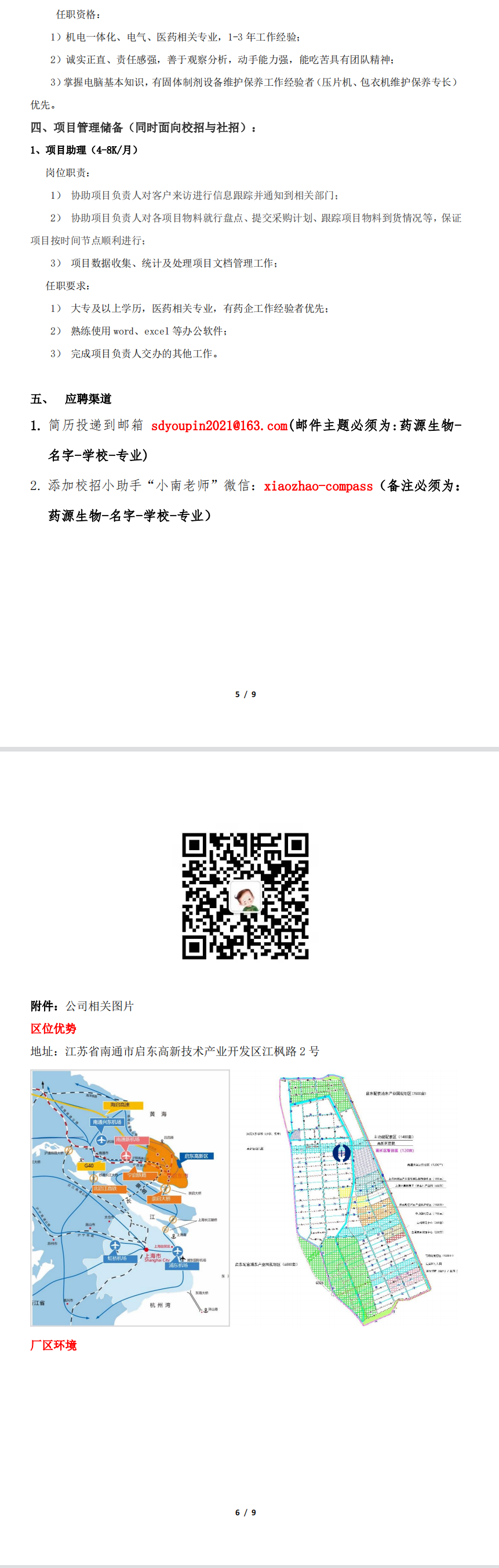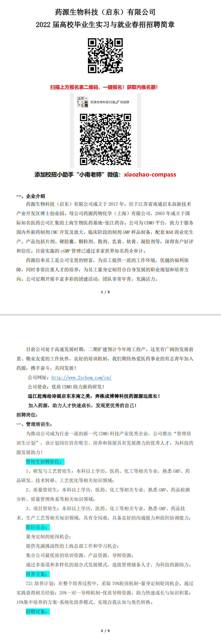 生工学院【2022】130号 药源生物科技(启东)有限公司毕业生实习与就业春招招聘简章