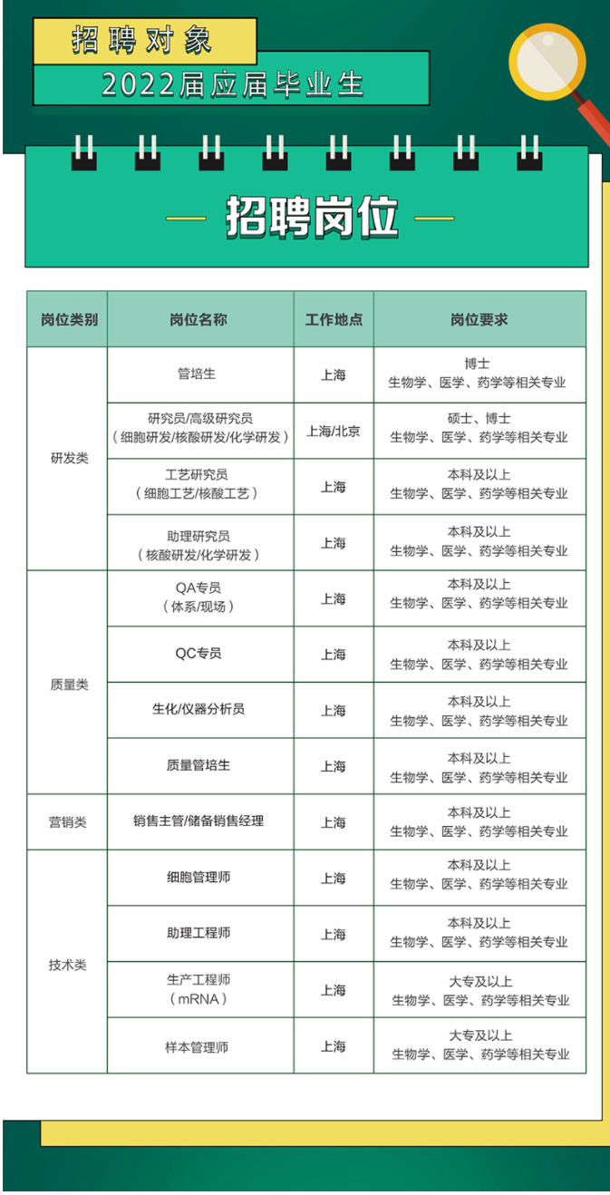 生工学院【2022】163号 上海细胞2022届春季招聘