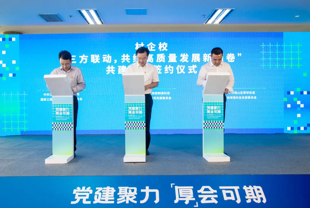 活动现场,锡山经济技术开发区厚桥街道高新技术企业党建联盟正式成立。beat365中文官网党委书记王维、厚桥街道党工委书记张晓庆共同为“教学实践研习基地”揭牌,为学院师生在教科研成果转换、人才培育等方面提供帮助和支持。粮食发酵工艺与技术国家工程实验室常务副主任李兆丰、中科微至董事长李功燕、谢埭荡村党总支书记华东明为村企校“三方联动,共绘高质量发展新画卷”项目进行签约。今后村企校三方将围绕组织联动、党员联动、服务联动“三联动”探索共同发展之路,并就特色农产品研发配套和深加工产品领域开展合作,真正实现“党建引领、发展共赢”。