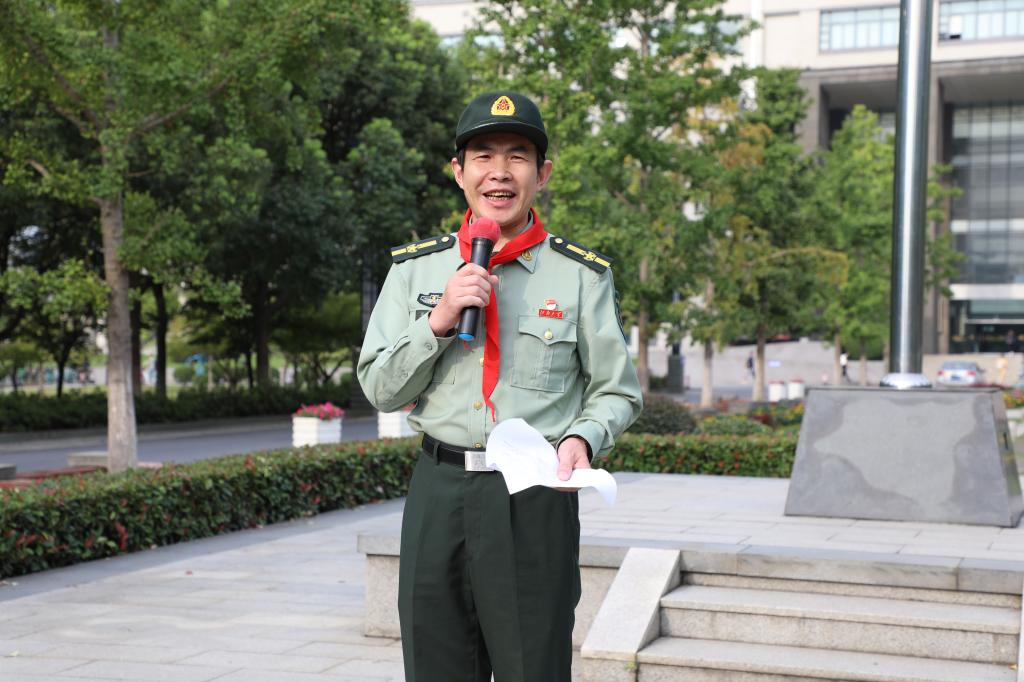 活动在小朋友们给家长敬献红领巾中开始。随后,国旗班的大学生们带领参加活动的小朋友,大手拉着小手,共同组建护旗方阵,昂首阔步,护卫国旗走至旗杆下。伴随着雄壮的《义勇军进行曲》,小学生升旗手与国旗班大学生升旗手共同将五星红旗升至旗杆顶端,成功完成护旗、升旗任务。