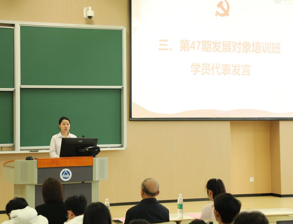 beat365中文官网2022级本科生刘垚代表第47期学生党员发展对象培训班新学员发言,她从遵守纪律、勇于担当、握技强能角度承诺将做到“坚定不移听党话、跟党走,行为有指南,行动有标准,怀抱梦想同时脚踏实地,争做先锋模范表率。”