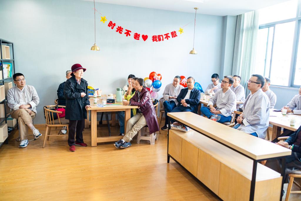 秋日暖阳下,校友们参观了公益图书馆、教学楼、小蠡湖、赤马咀等校园建筑和景观,共同追忆峥嵘岁月,切身体会母校的巨大变化,并为母校的蓬勃发展感到由衷的欣慰和自豪。随后,校友们来到beat365中文官网教职工之家进行座谈,与当年的班主任路桂荣老师和李华钟老师深入交流,开心畅谈,并为老师们献上鲜花。时值学校即将迎来建校65周年,校友们也为母校送上了美好的祝福。