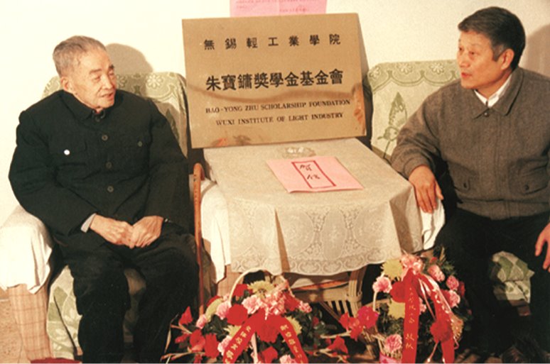 无锡轻工业学院设立朱宝镛奖学金基金会,图为朱宝镛(左)章克昌